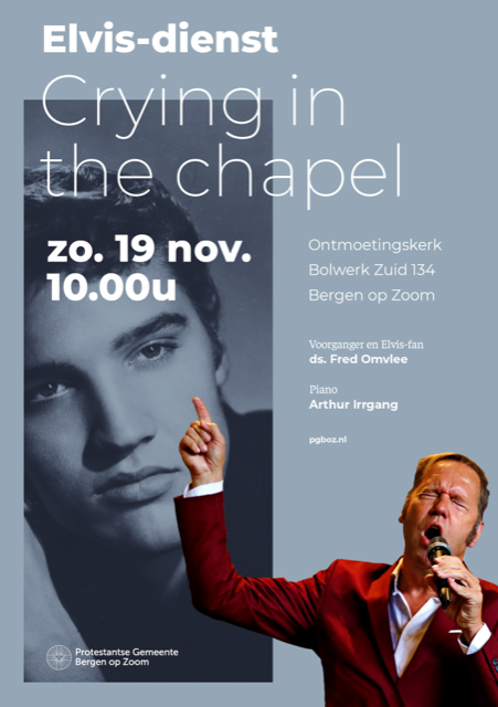 Op zondag 19 november zal er een speciale Elvis-kerkdienst plaatsvinden in onze Ontmoetingskerk, geleid door ds. Fred Omvlee.